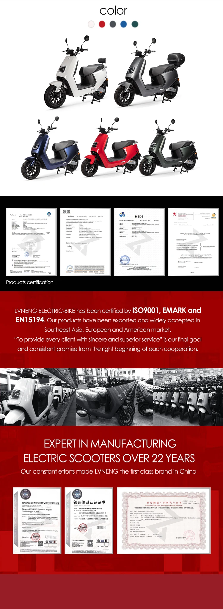 La fábrica N-moto Lvneng fabrica un scooter eléctrico de motocicleta E de 4000W EEC de diseño propio para adultos