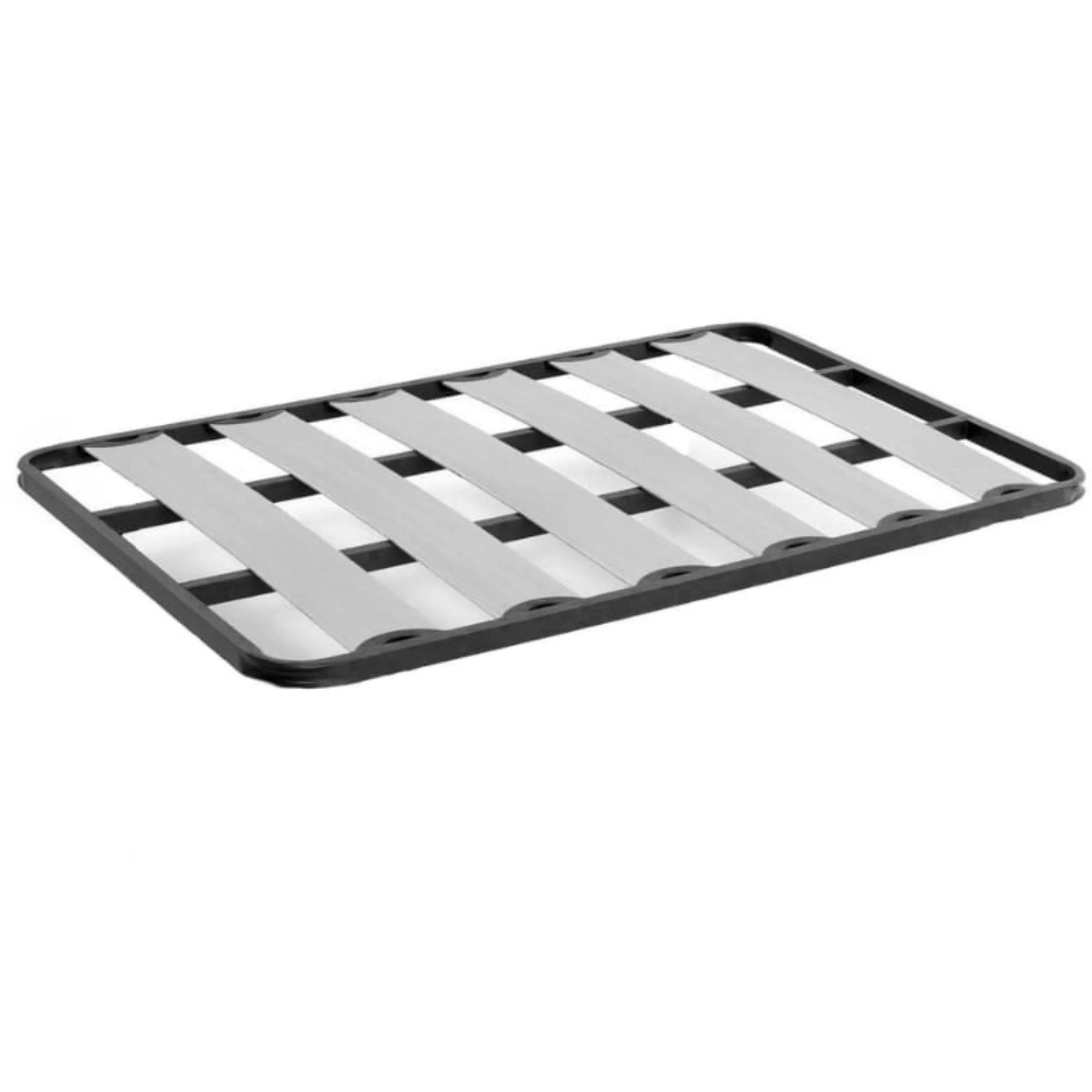 Con 6 pletinas para colocar las patas cilíndricas. Somier de fabricadión nacional, con pintura negra exposi metalizada de secado al horno con tratamiento anticorrosión. Somier con tubo rectangular de 40×30 mm.