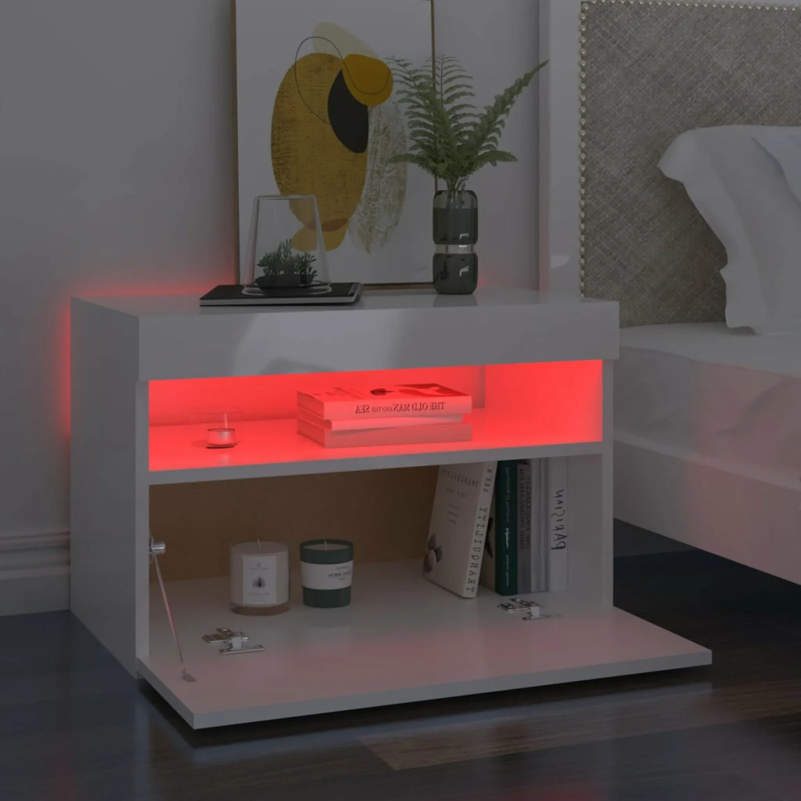 Mueble de habitación, mueble de TV, muebles para el hogar con luces LED para sala de estar, mueble de dormitorio, almacenamiento, decoración del hogar, 60x35x40 cm
