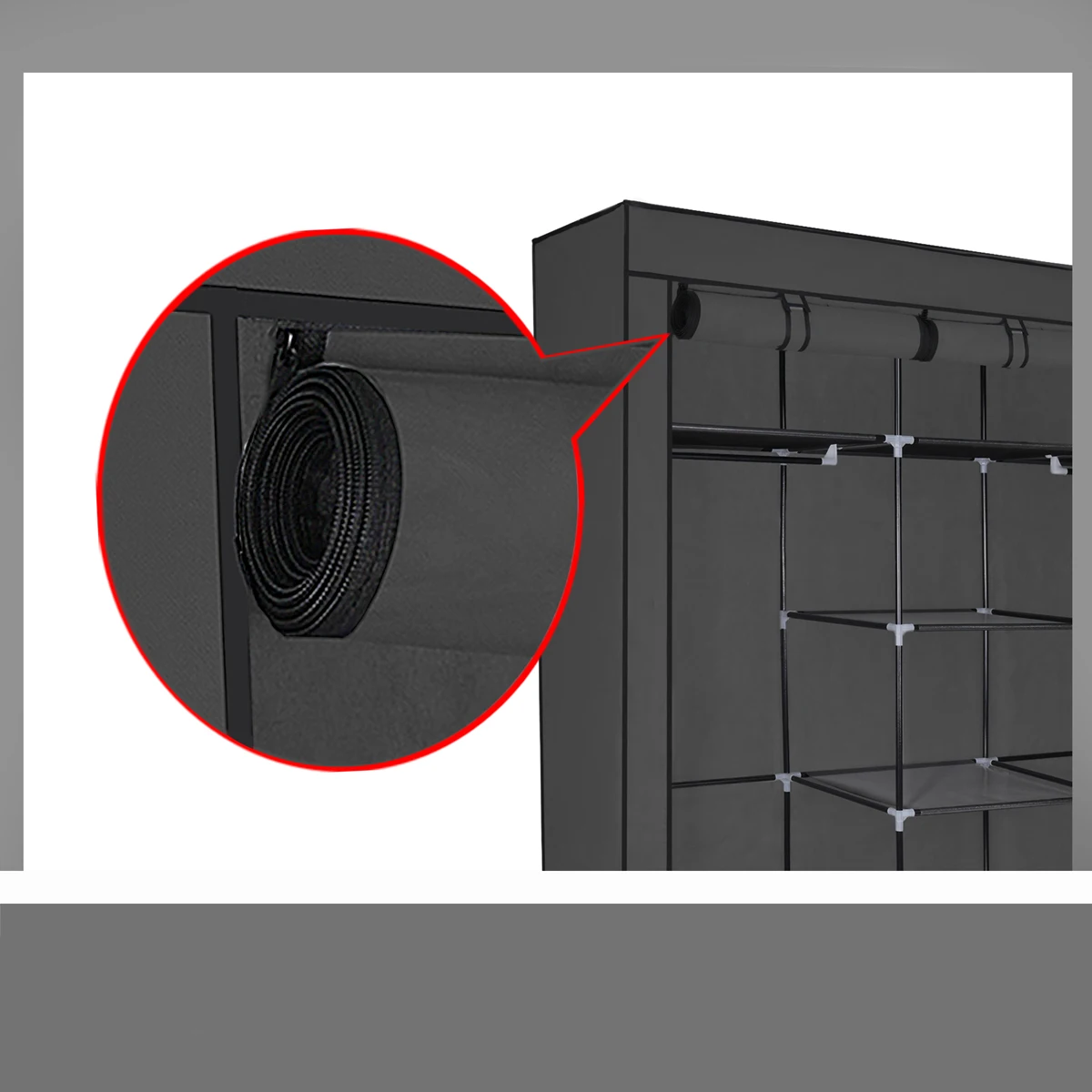 Está hecho de tela no tejida y marco de tubos de acero, protegiendo su ropa del polvo y ocupando poco espacio, lo que es adecuado para cualquier lugar de habitación.